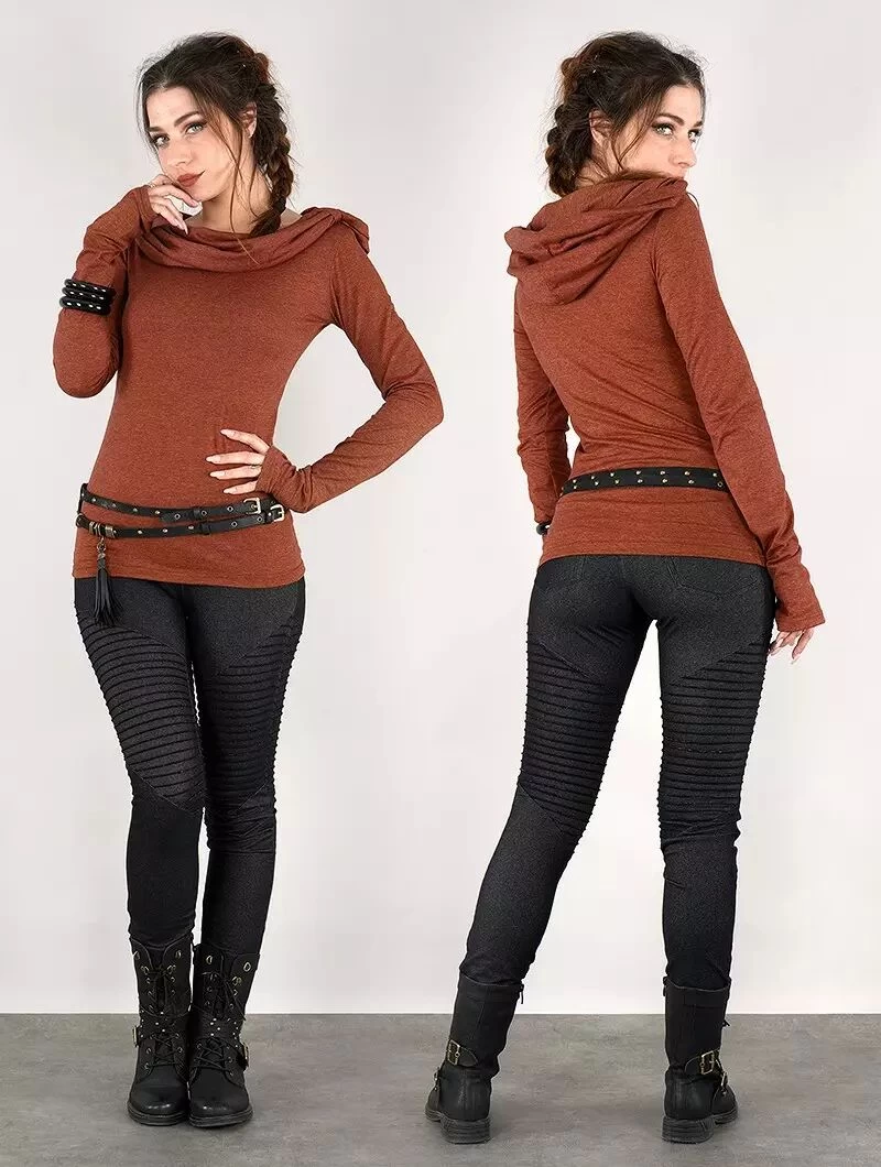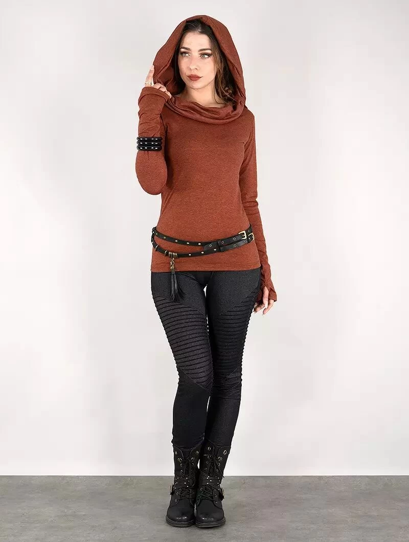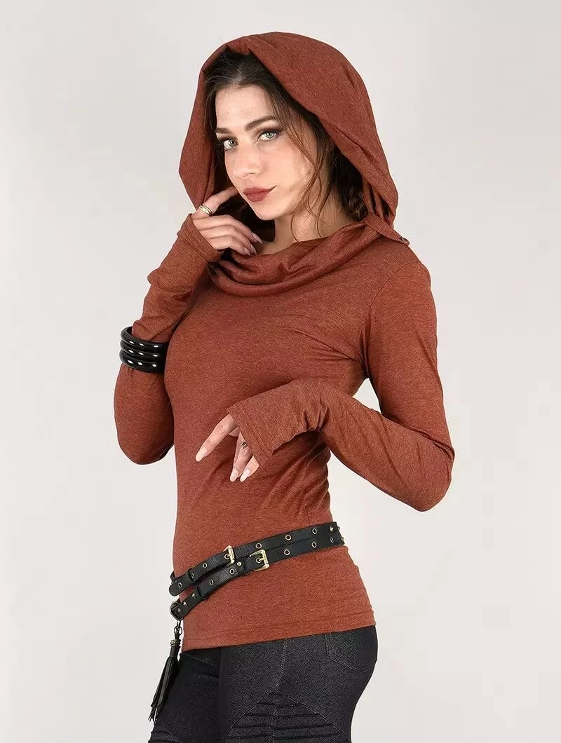 - Manches longues plissées sur les poignets avec passage pour les pouces