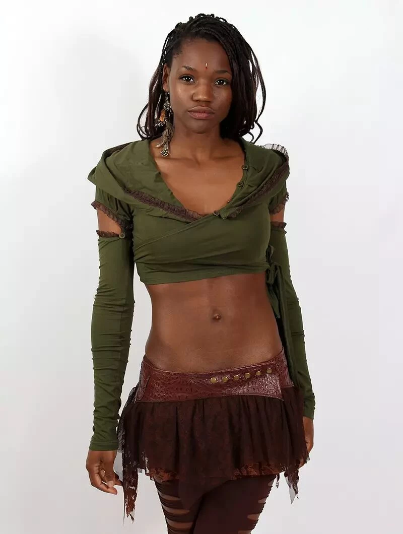 - Joli top cache-coeur doublé devant avec manches longues et grosse capuche doublée détachables !