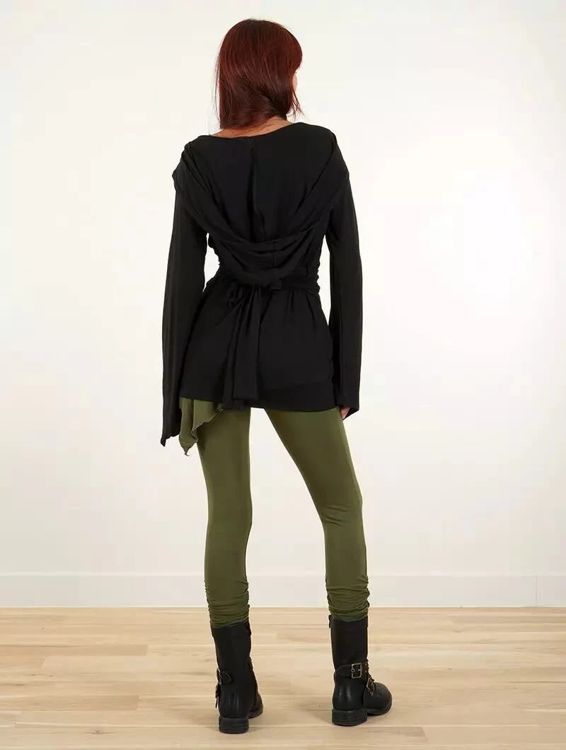 - Joliment croisé à l’avant et à fermer grâce à une large lanière à enrouler autour de ta taille