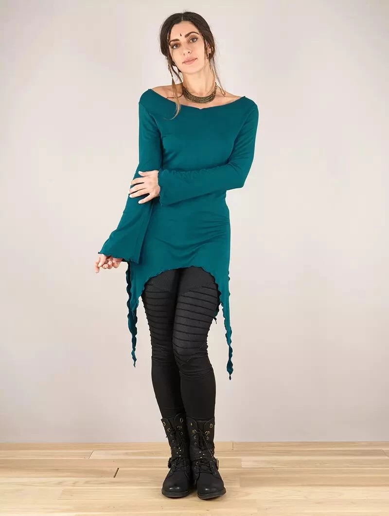 - Joli top manches longues à col rond et large
