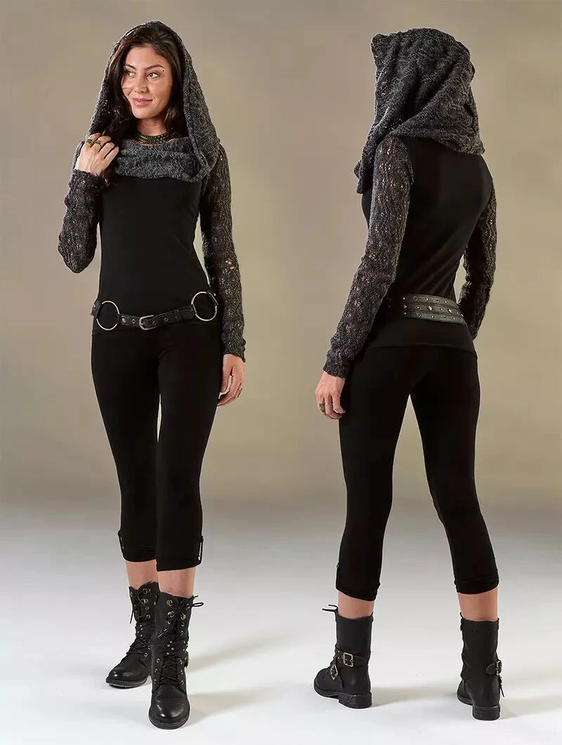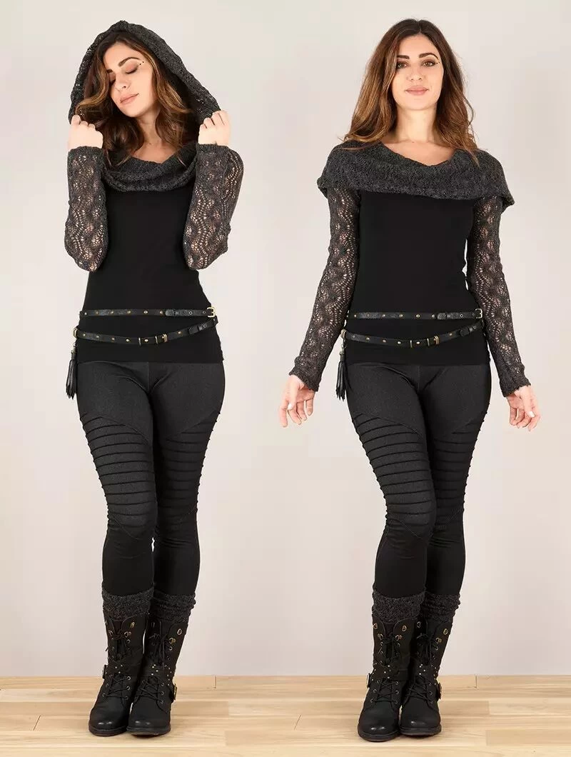 - Top à manches longues et large col capuche qui peut être mis élégamment sur les épaules