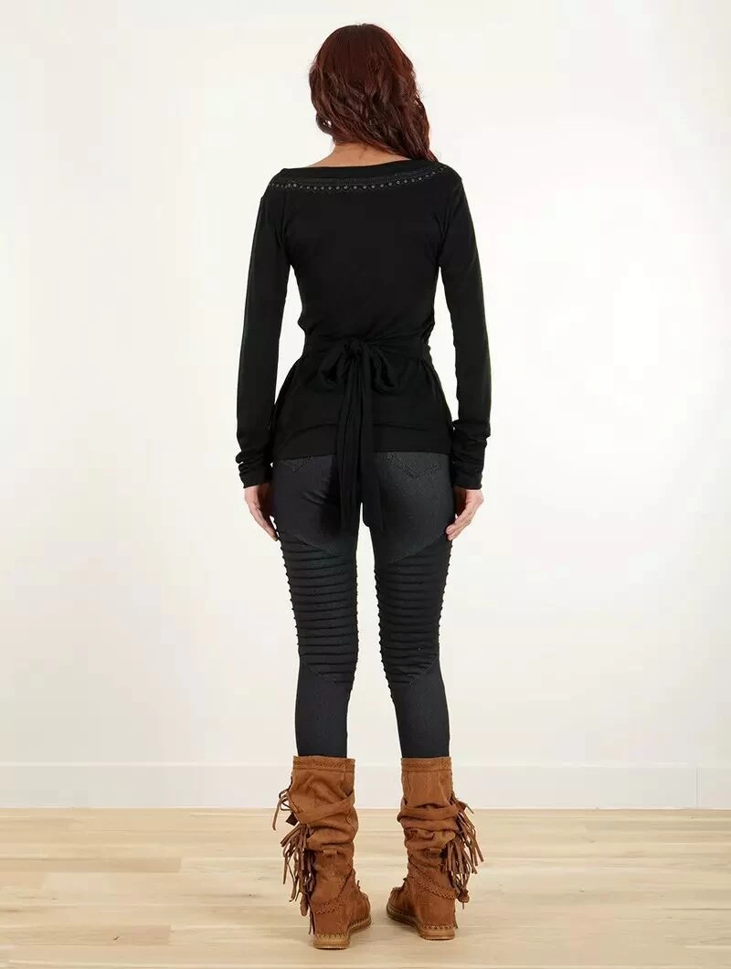 - Super imprimé éthnique “Indie” en liseré sur les bords du cache coeur – du col aux extrémités