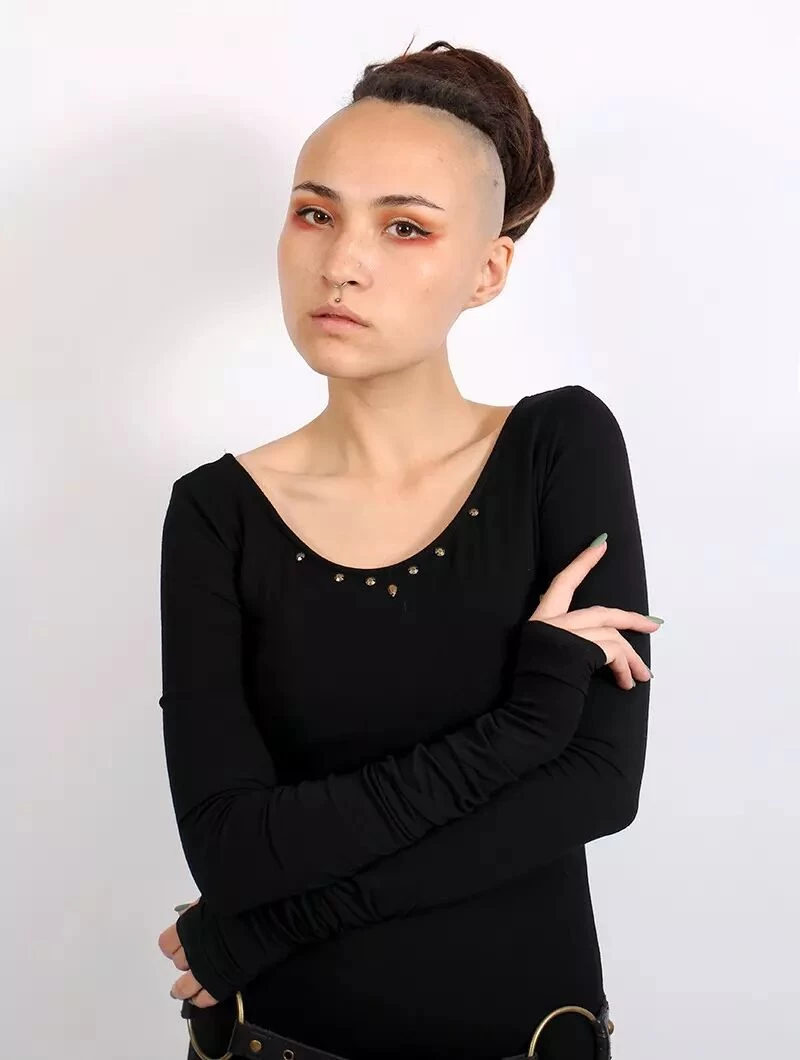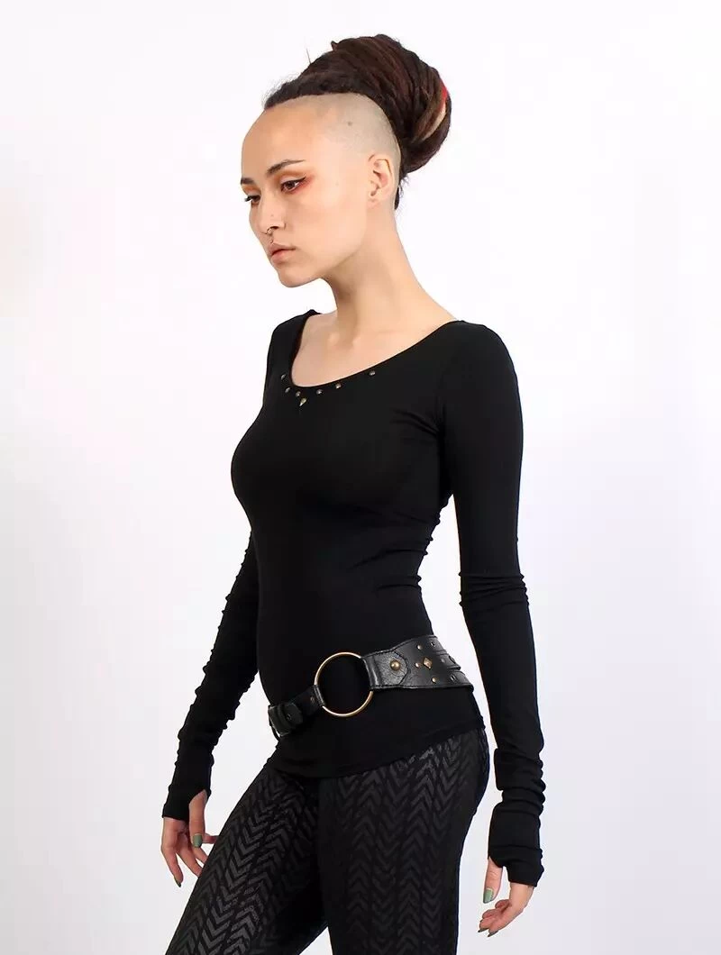 - Manches longues plissées au niveau des poignets et avec passage pour les pouces