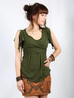 - Top asymétrique aux allures de robe, plus long au dos qu’à l’avant !