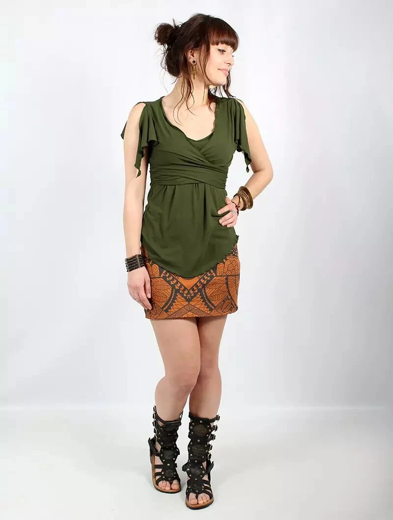 - Top asymétrique aux allures de robe, plus long au dos qu’à l’avant !