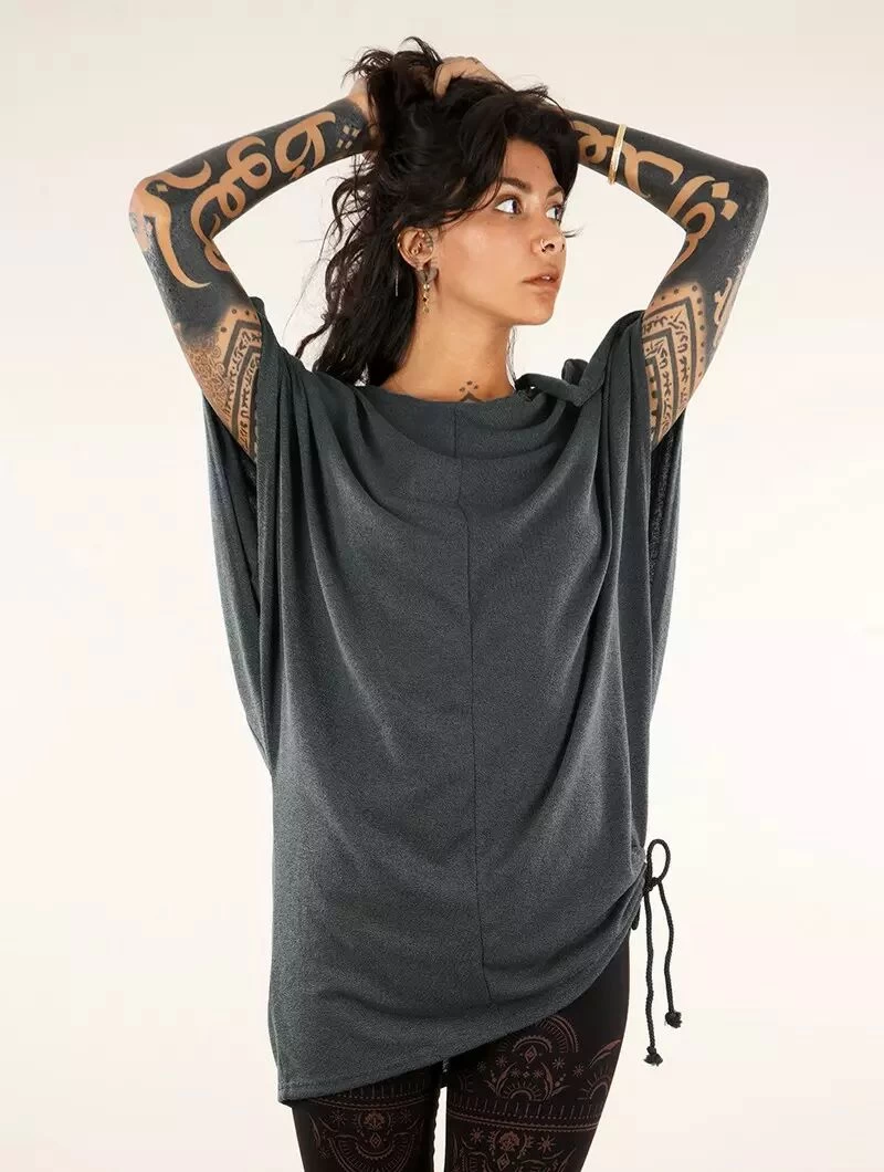 - Un gallon resserrable sur le côté te permet de réajuster la tunique pour lui donner un rendu asymétrique et stylé 😉