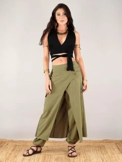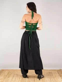 Crop Top à Manches Longues évasées Et Laçage « Elfique », Vert Kaki