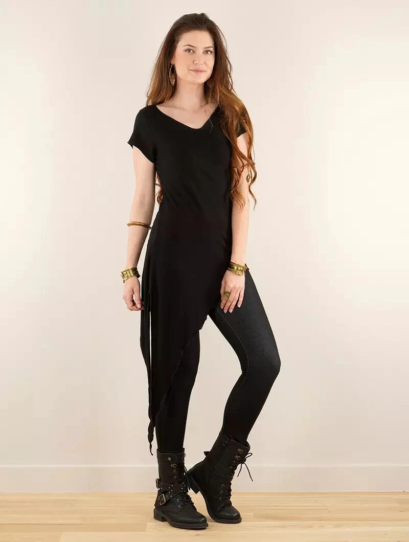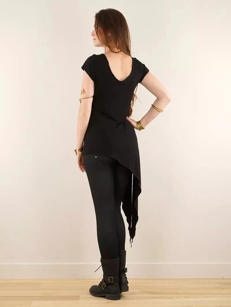- Coupe légèrement ample avec un côté beaucoup plus long que l’autre qui donne une jolie asymétrie